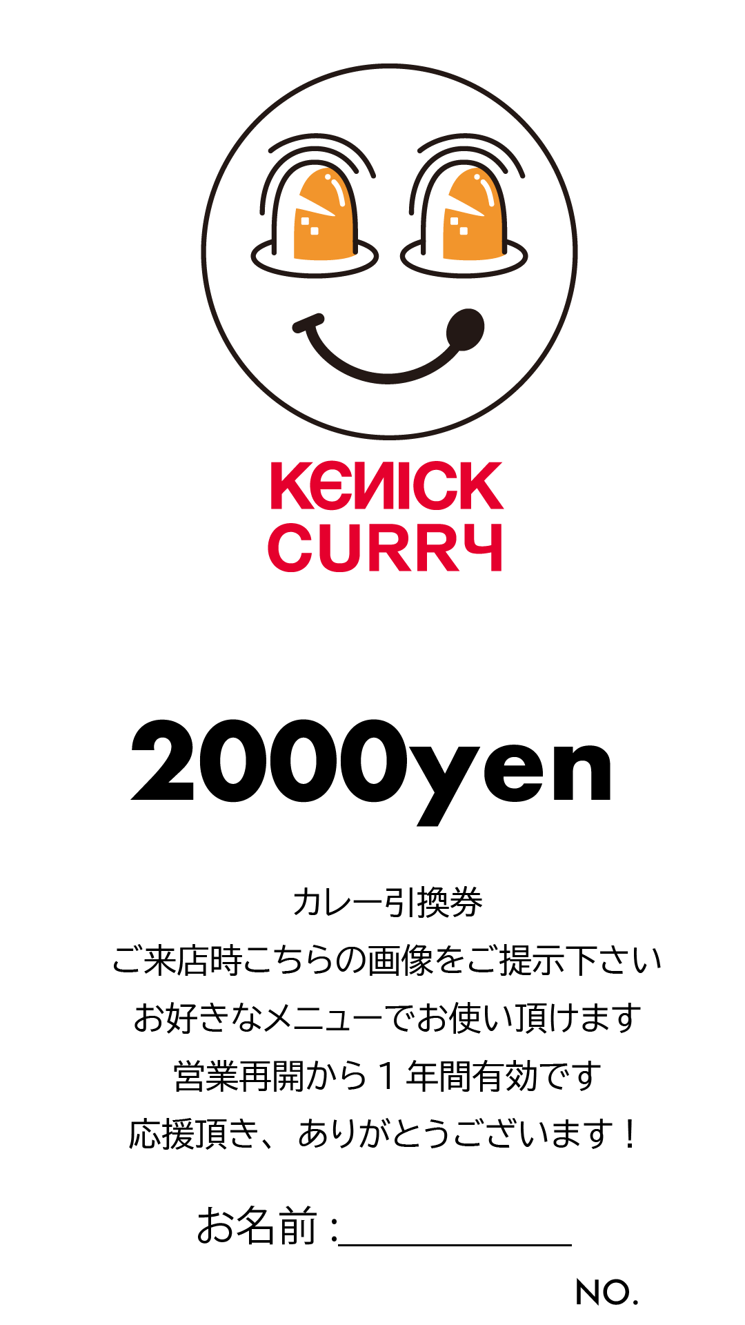 再開を待ってくださる皆様の応援にお応えしたく、営業再開後に店舗で使える「未来のカレーチケット」をご用意いたしました。