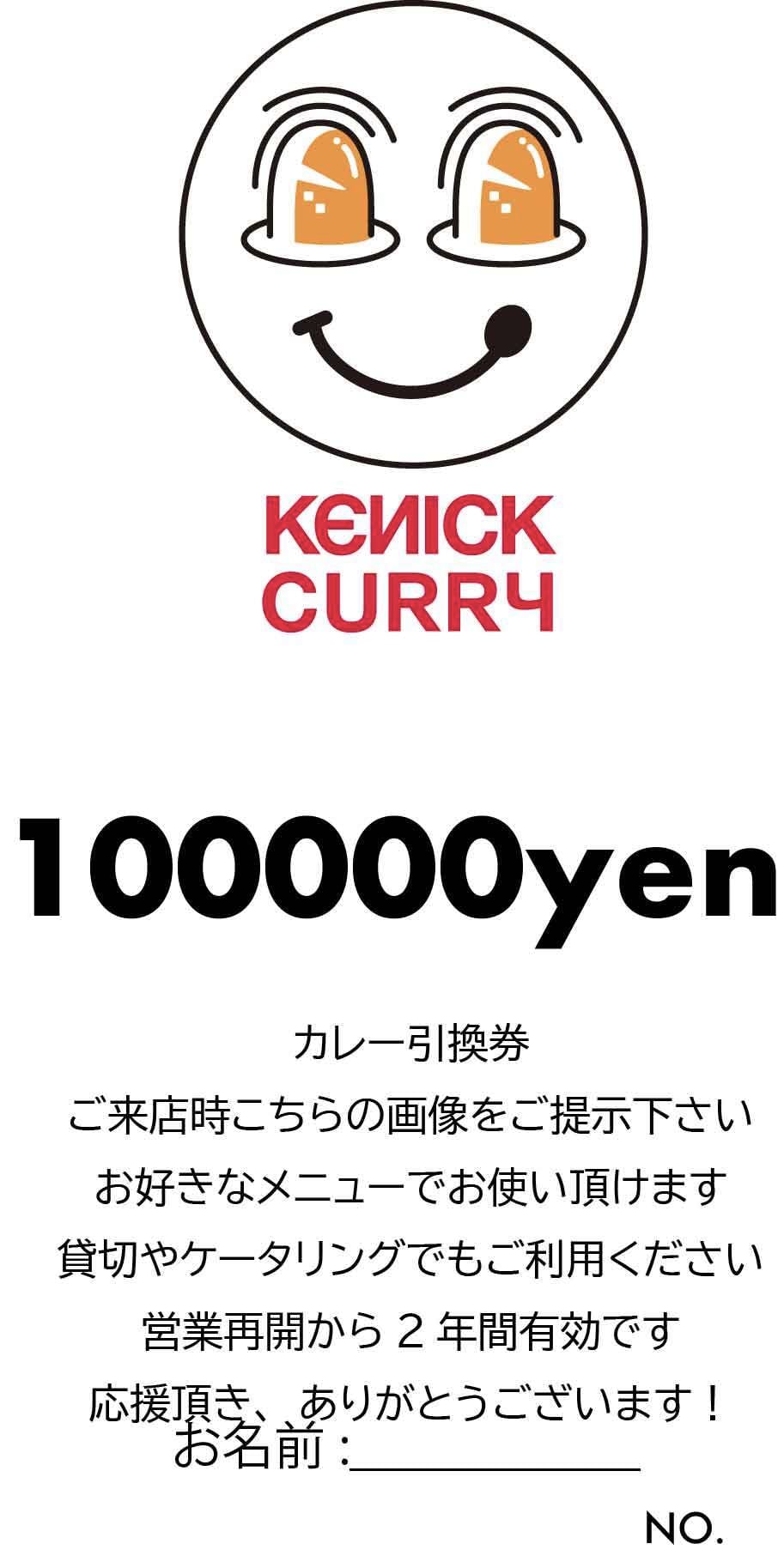 【復活応援】KENICK CURRY 未来のカレー引換券(100,000円分)